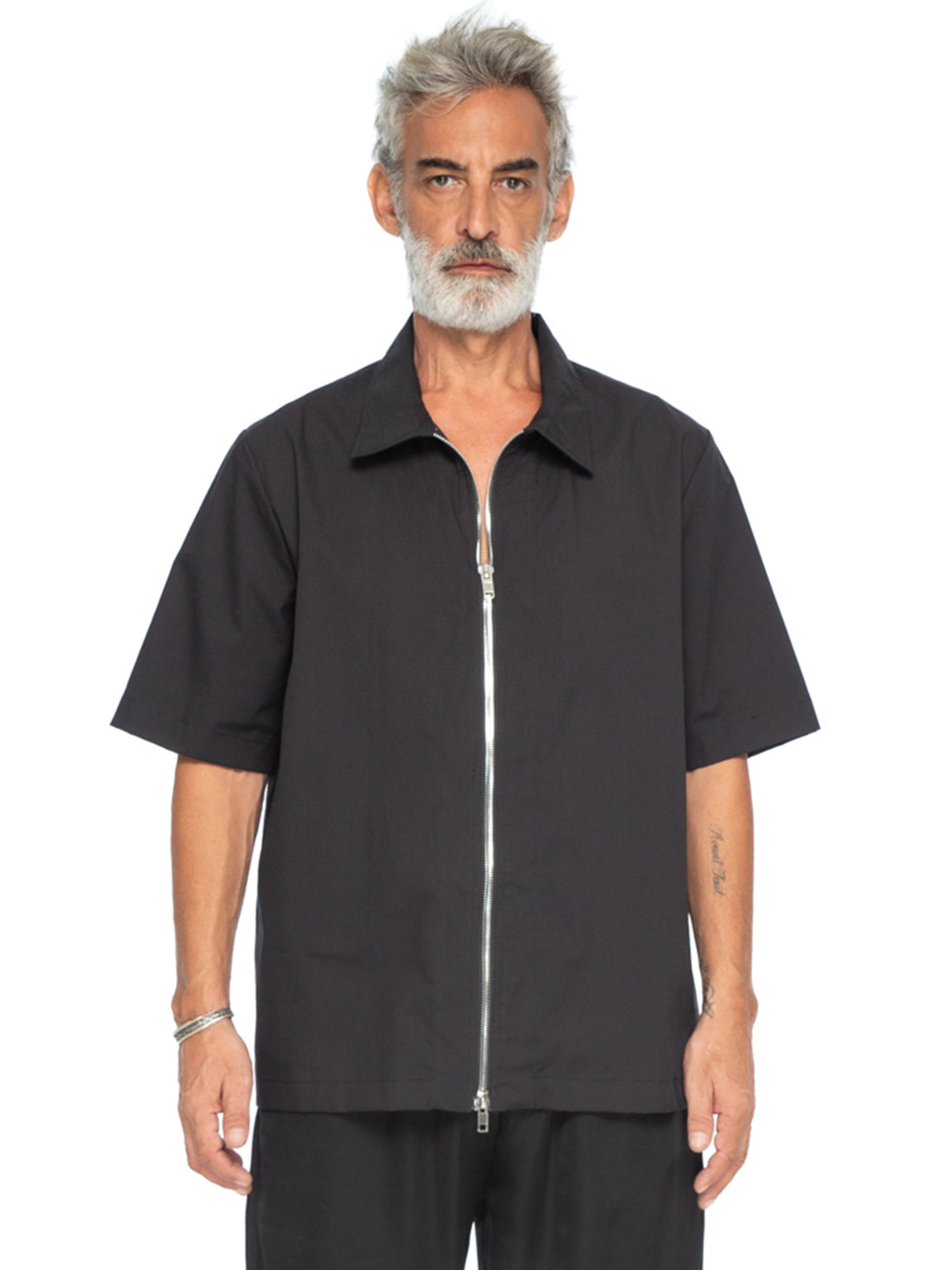The Cotton Zipper Shirt by YA|SAR is a bold reinterpretation of the classic short-sleeve shirt,...