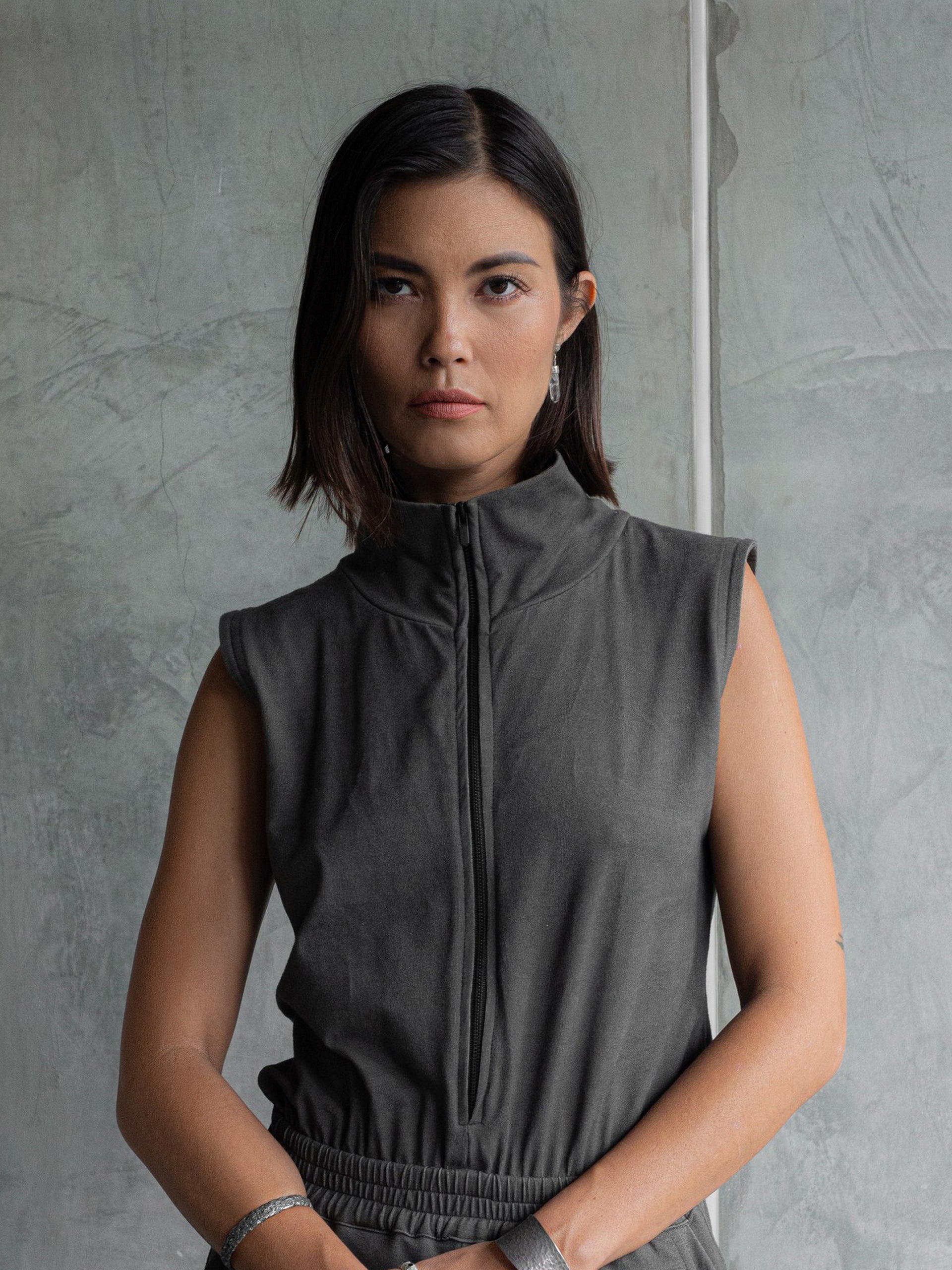 Effortlessly blend style and functionality with the YA|SAR Utility Stretch Cotton Jumpsuit. This sleeveless jumpsuit...