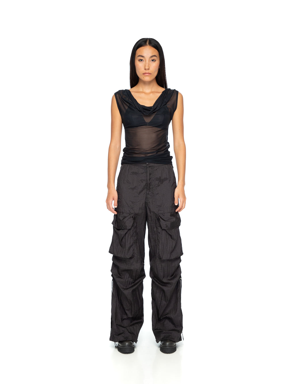 Sheer design with a draped fit, perfect for layering or wearing solo.