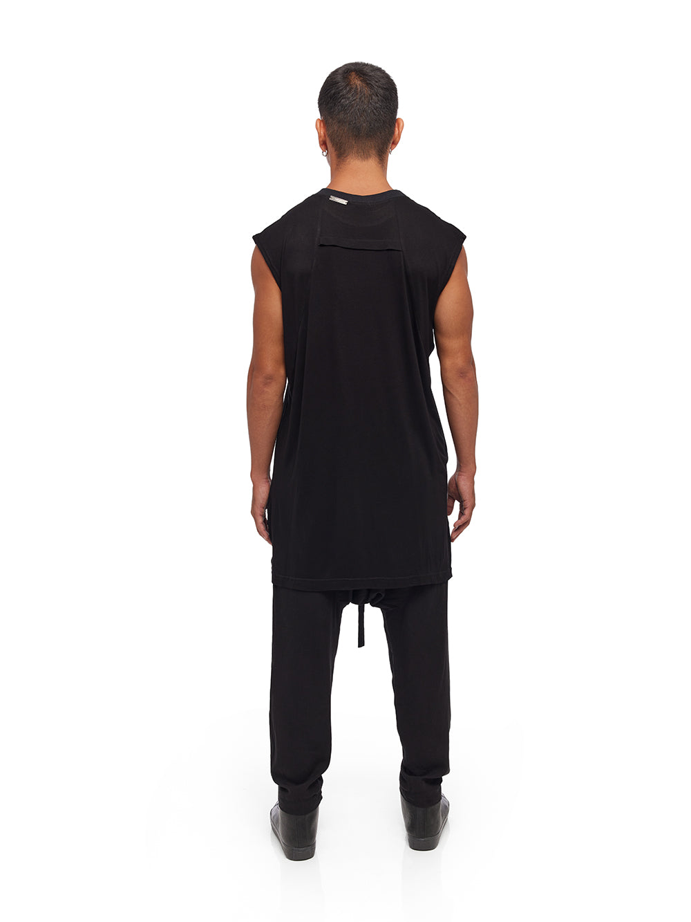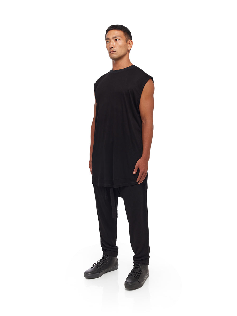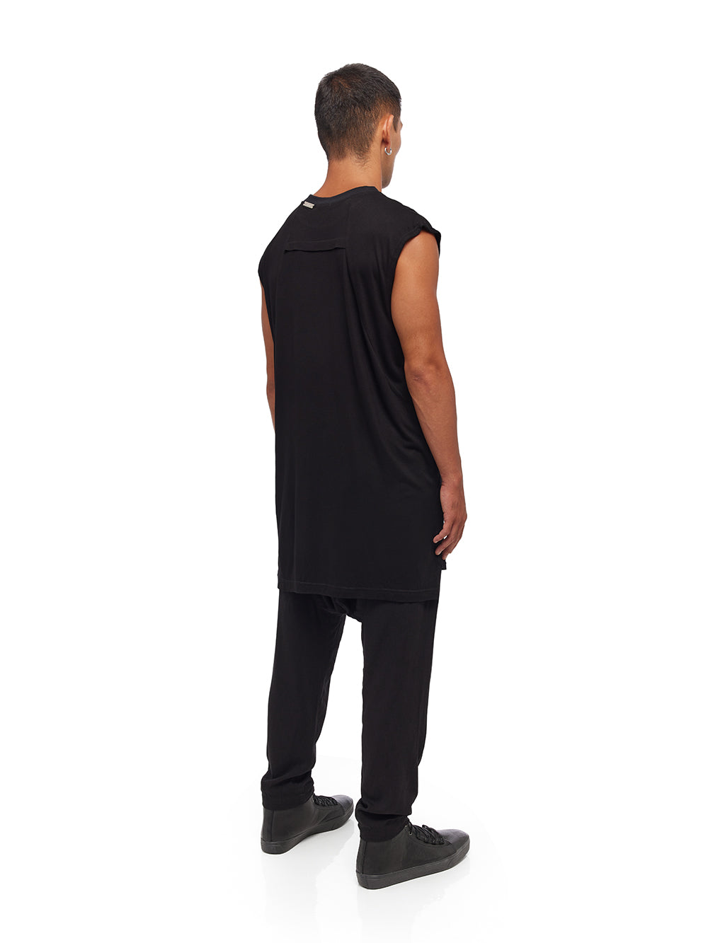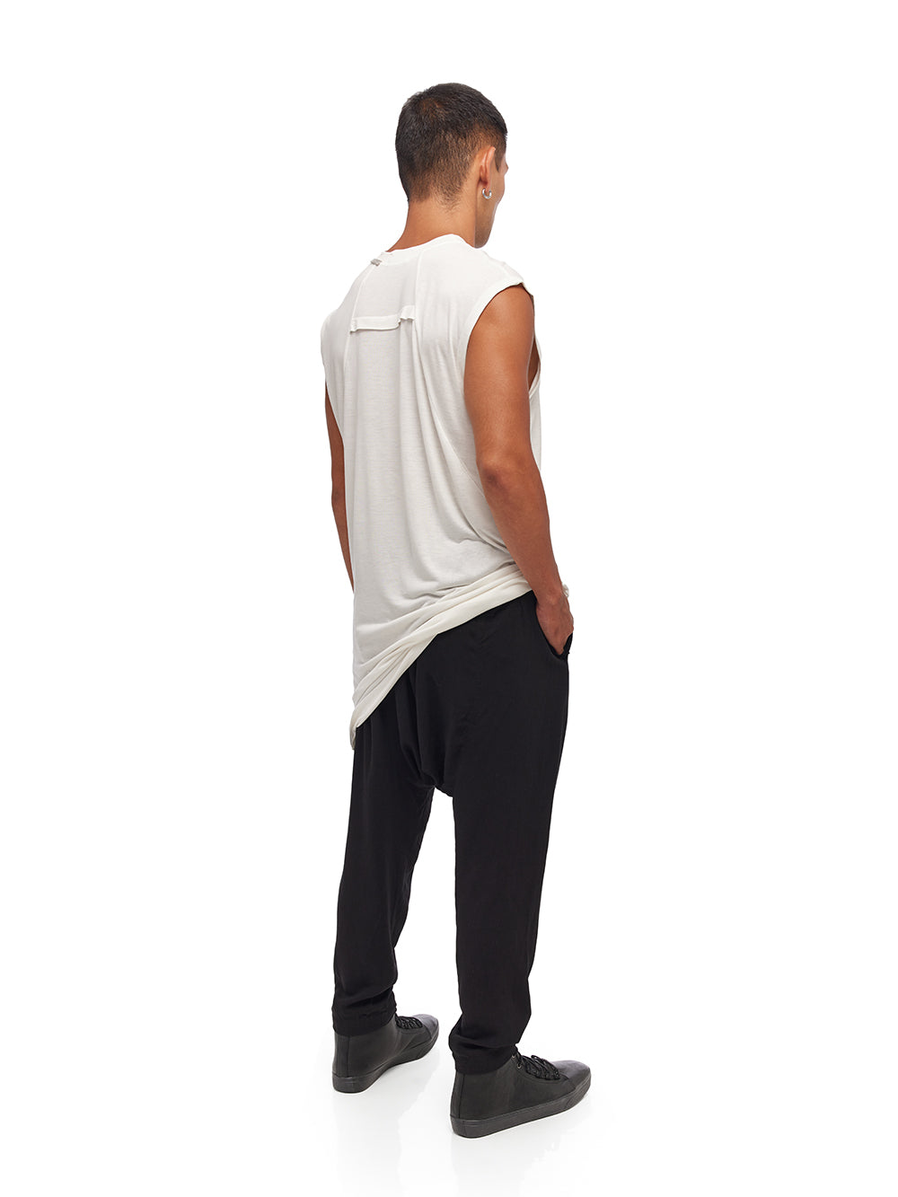 Crafted from 100% Bamboo, this YA|SAR singlet offers an eco-friendly choice without sacrificing style. Available in classic black and off white, the singlet features a ribbed neck that ensures comfort and durability. The bamboo material provides a soft, breathable quality that is perfect for sensitive skin, combining environmental consciousness with luxurious wearability. Distinctive design elements include back line stitch detailing and a stylishly extended lower part, adding a modern twist to the traditional singlet form. Metal tag detailing enhances the refined aesthetic, marking this piece as a signature YA|SAR garment. Male model is wearing size M and is 180 cm tall.