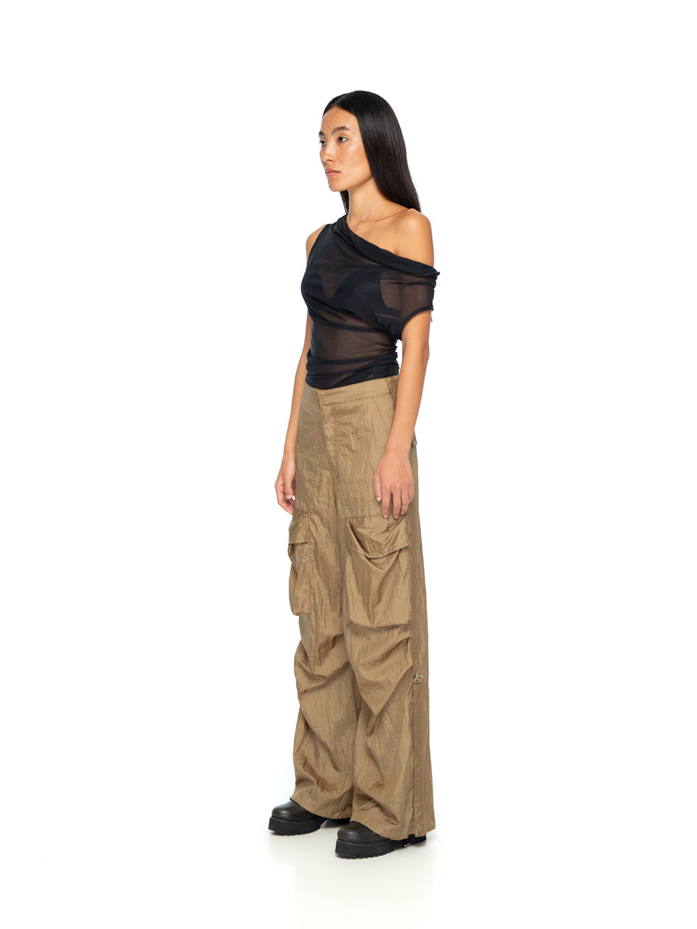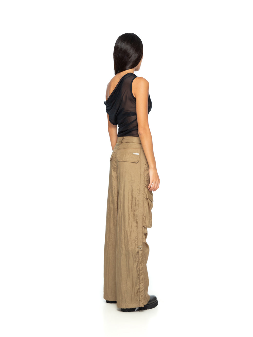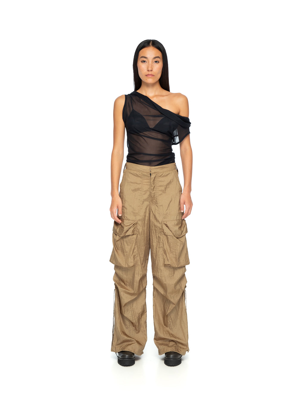 Step into utilitarian chic with the YA|SAR Cargo Parachute Pants. Designed with functionality and style in mind, these pants combine a lightweight structure with bold, practical detailing, making them a versatile statement for everyday or edgy styling. Crafted from 100% Parachute, airy feel and subtle texture. High-waist cargo style with multiple flap pockets and side ruching for added dimension and functionality. Relaxed, wide-leg silhouette for maximum comfort and mobility. Statement pockets and structured elements give a modern utilitarian aesthetic. Perfect for pairing with fitted tops or oversized pieces for a high-contrast, fashion-forward look. With its unique blend of practicality and avant-garde appeal, these YA|SAR Cargo Parachute Pants are a must-have for the bold and daring wardrobe. Woman model is wearing size S and is 178 cm tall.