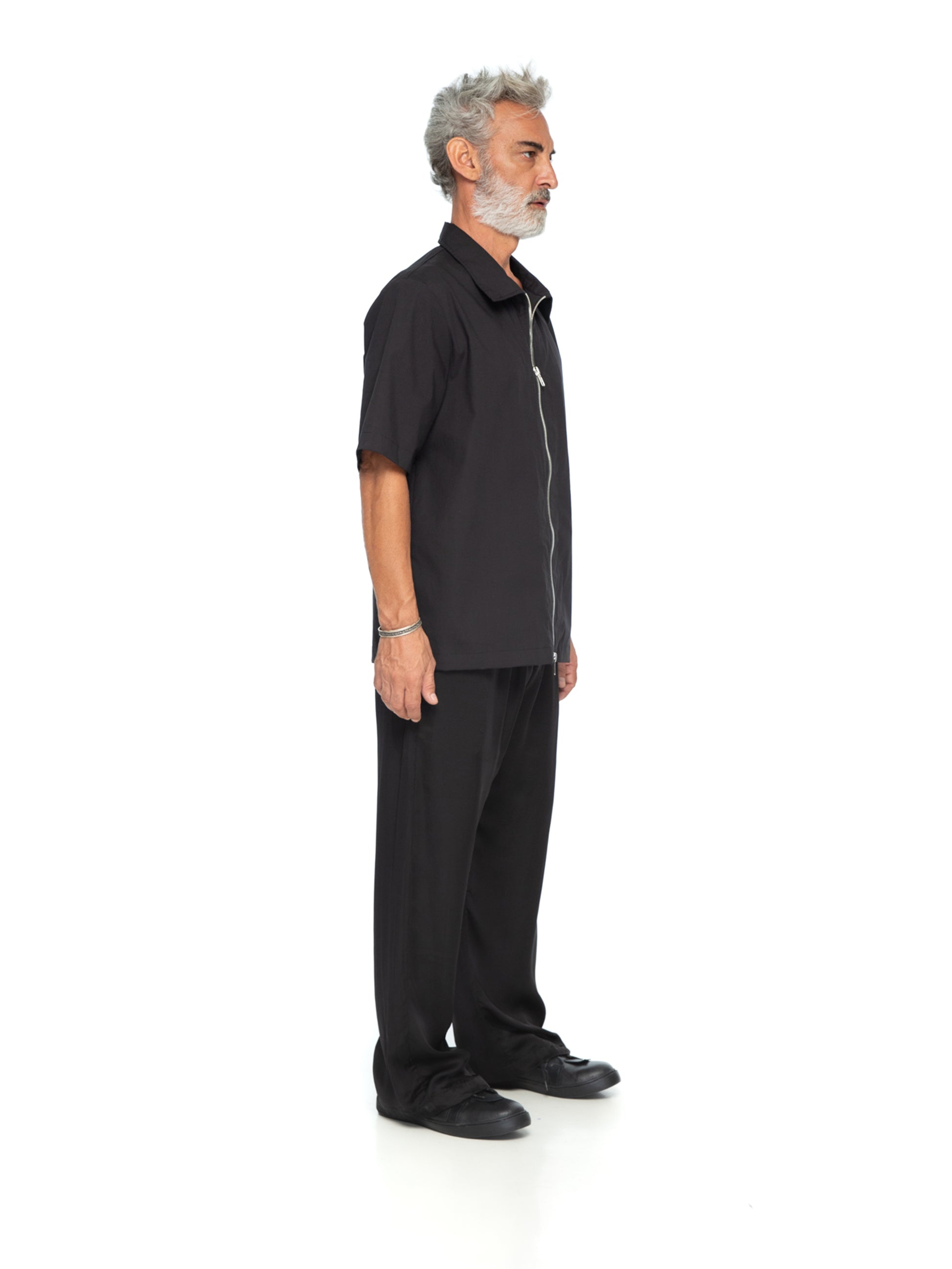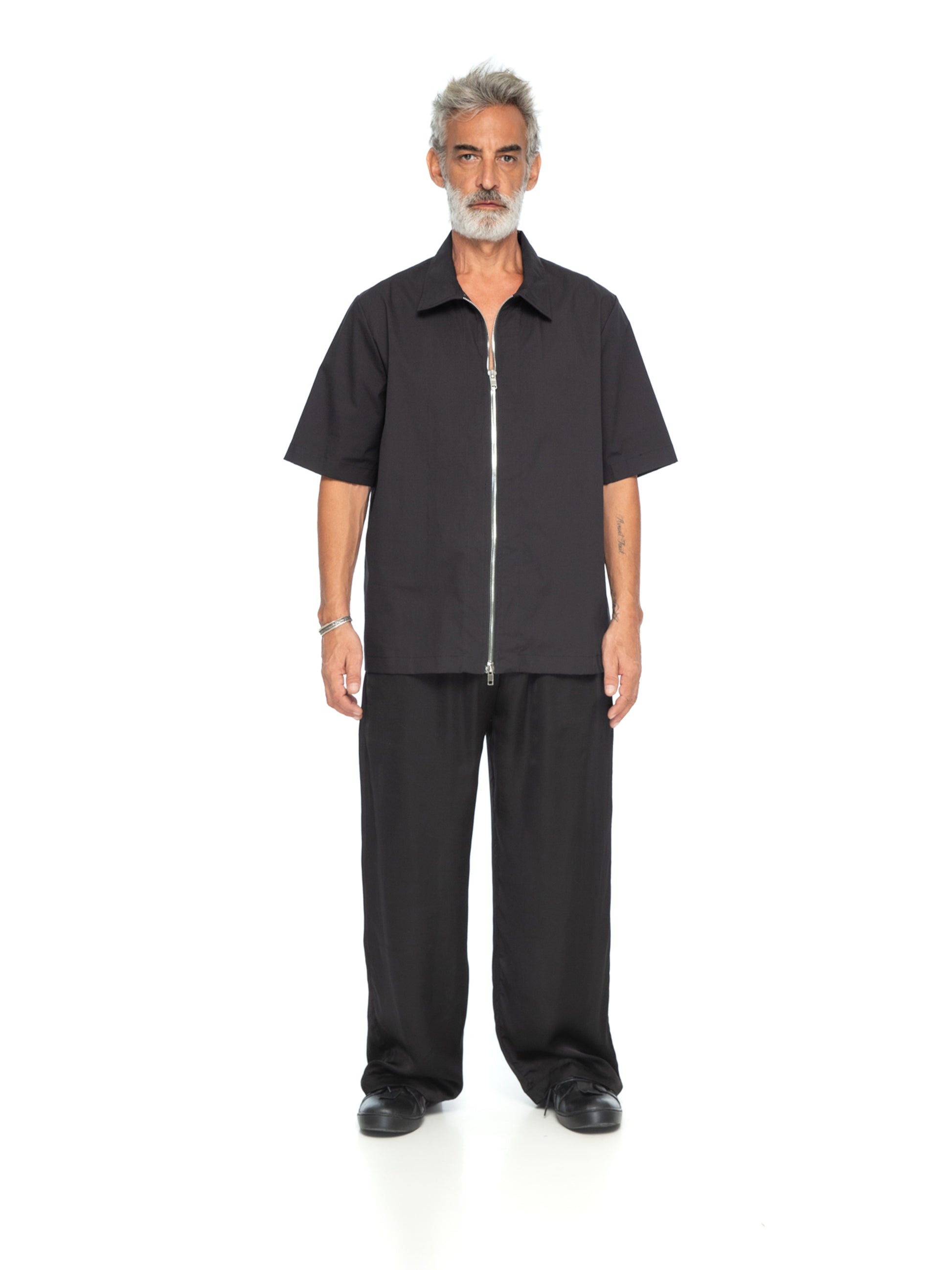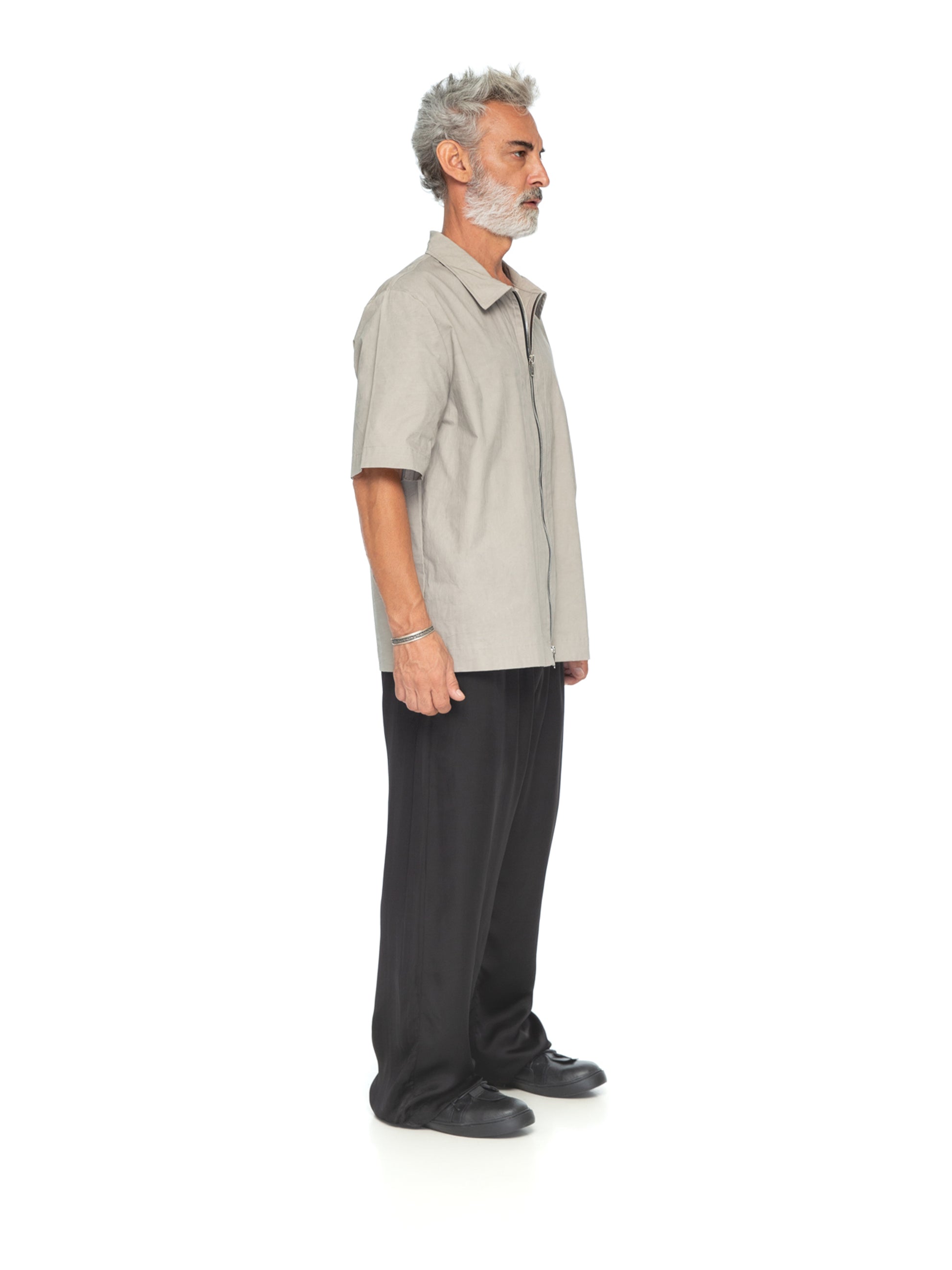 Effortlessly transitioning from casual to formal, the Cotton Zipper Shirt pairs perfectly with wide-leg trousers, tailored pants, or even denim. Its unique zipper detailing ensures it stands out while remaining timelessly versatile. Ideal for those seeking style that balances simplicity with bold design. Male model is wearing size M and is 180 cm tall.