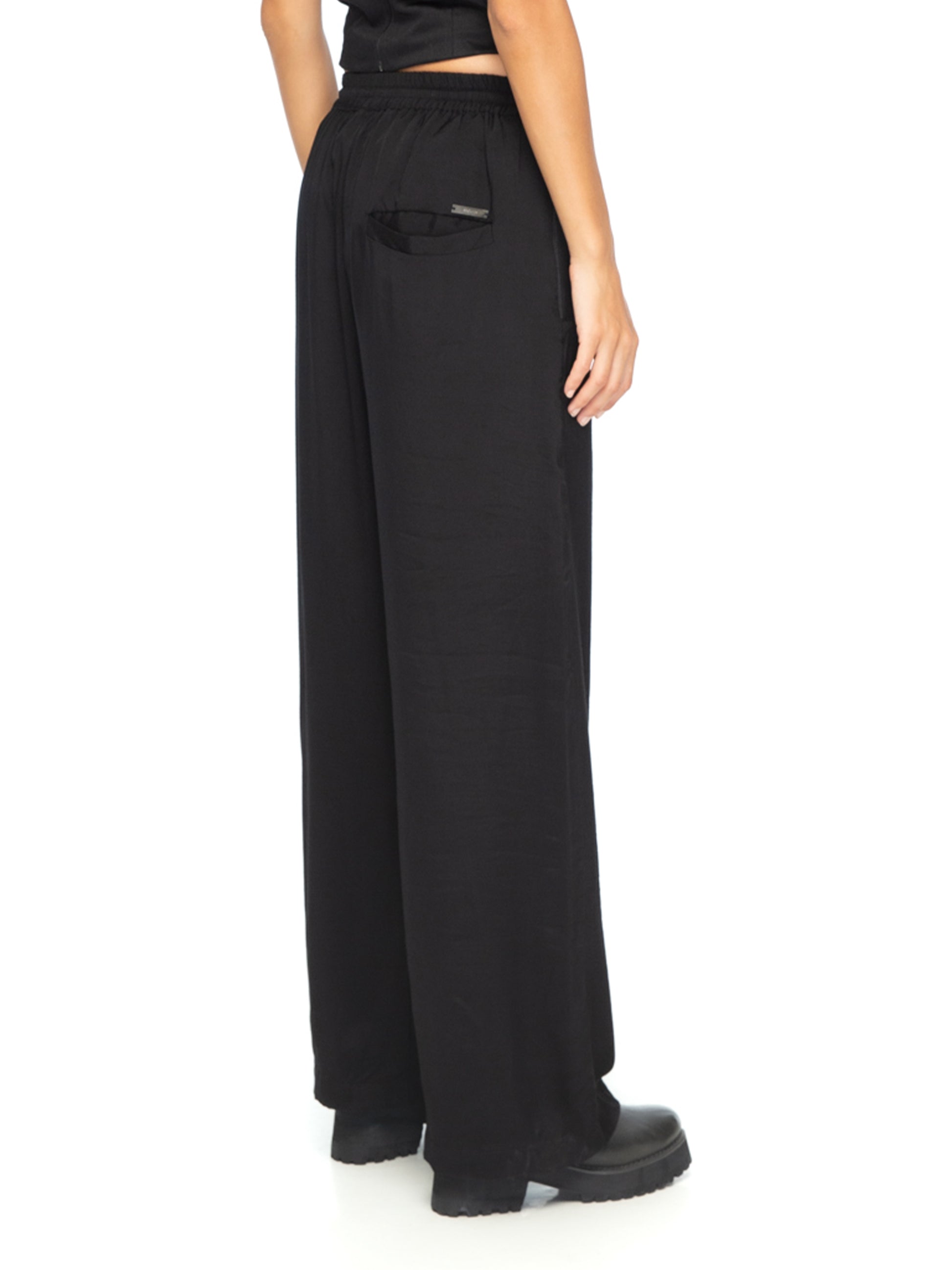 Crafted from 50% Satin, and 50% Rayon. Offering a silky texture, lightweight feel, and subtle shine. Relaxed fit with a wide-leg silhouette for a flowy and comfortable drape. Adjustable drawstring waist for a perfect fit, blending functionality with style. Full-length design that pairs beautifully with heels, boots, or sneakers. Perfect for both casual daytime wear and sophisticated evening outfits. Elevate your style effortlessly with these relaxed yet luxurious pants from YA|SAR. Whether paired with a crop top or a tailored blazer, these pants redefine modern comfort and elegance. Woman model is wearing size S and is 178 cm tall.