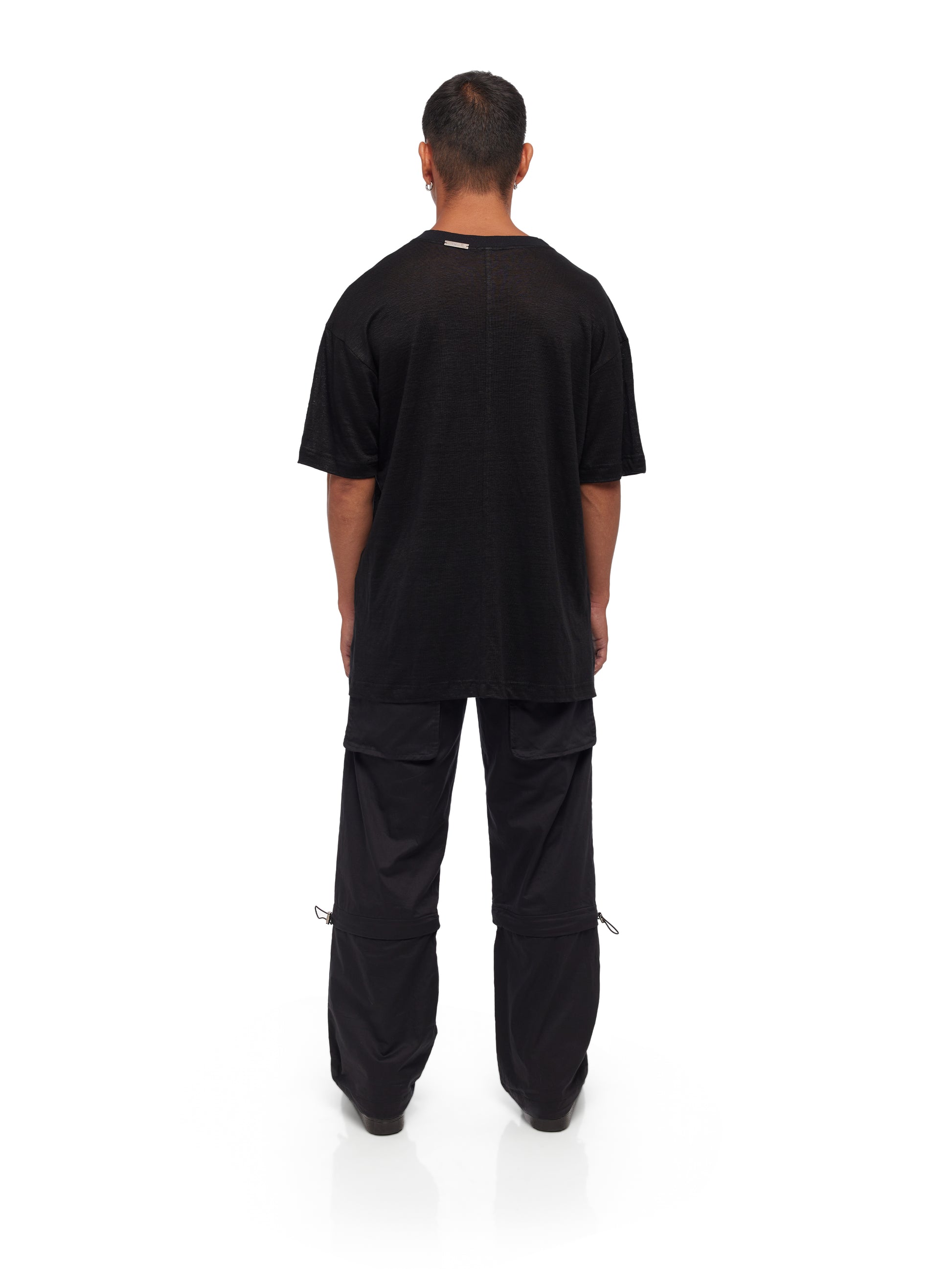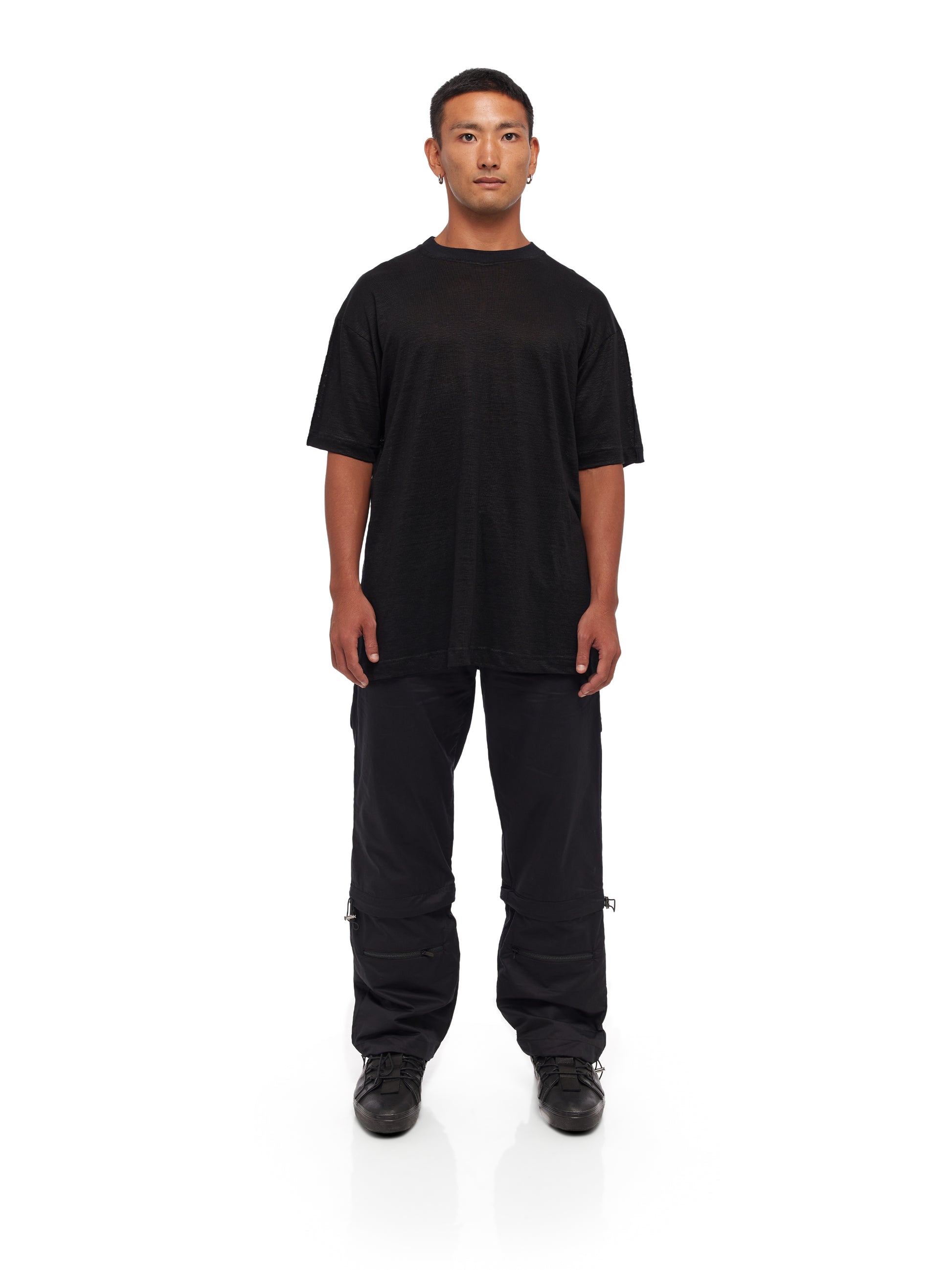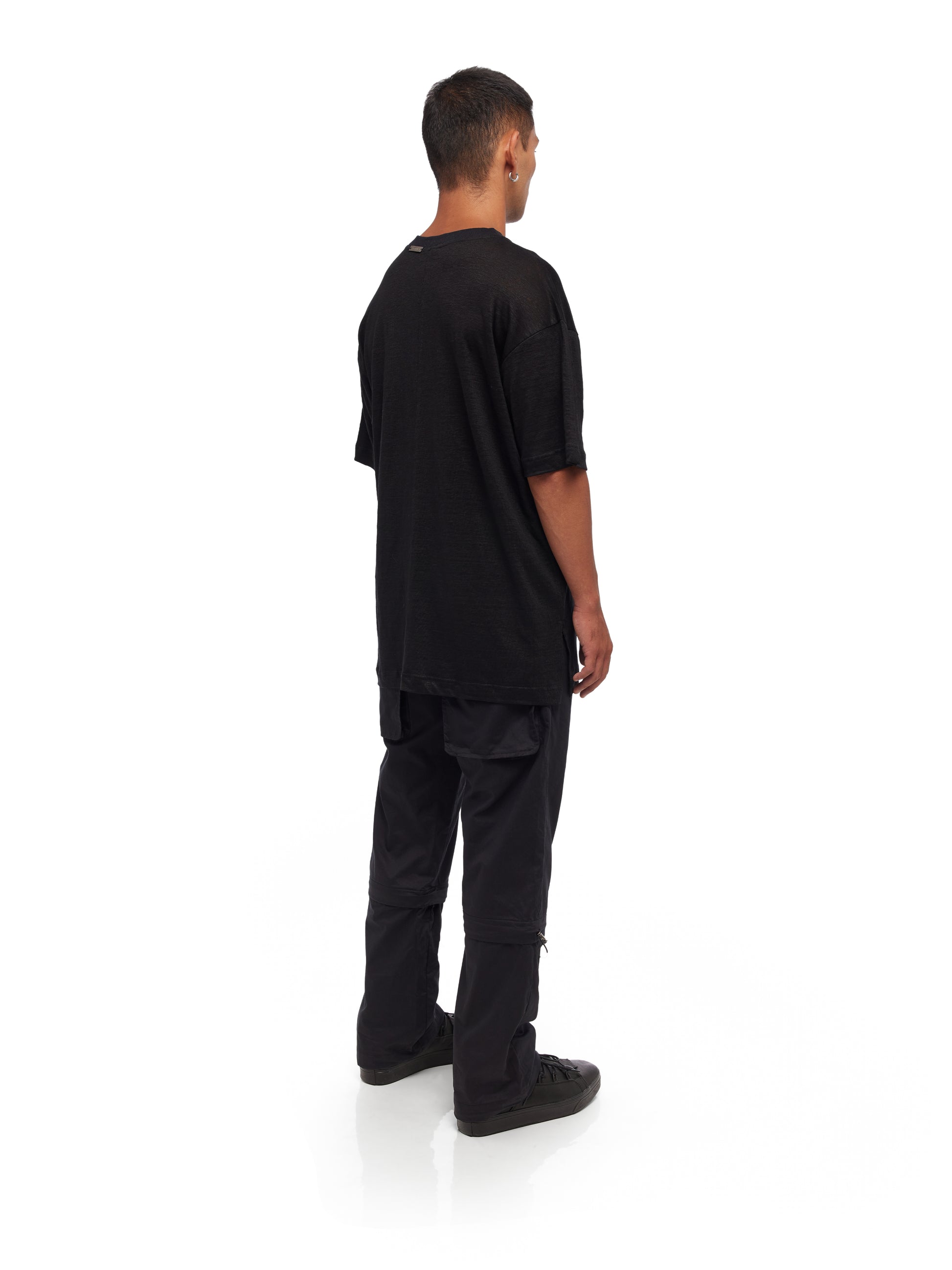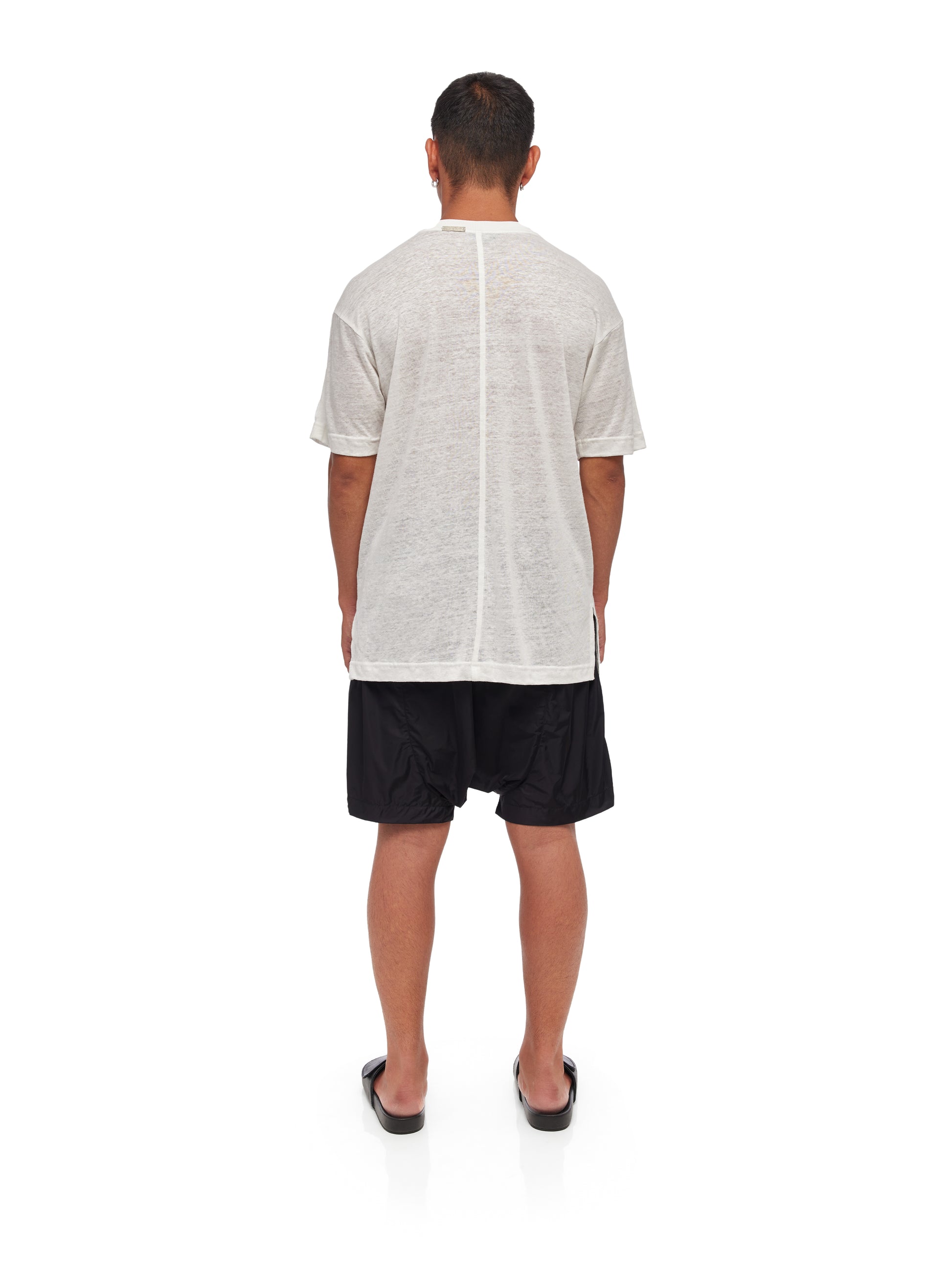 Effortless style that transitions from day to night. Pair it with tailored trousers for a refined edge or cargo pants for a contemporary urban look. The Square Linen Tee ensures comfort without compromising on sophistication. Male model is wearing size M and is 180 cm tall.