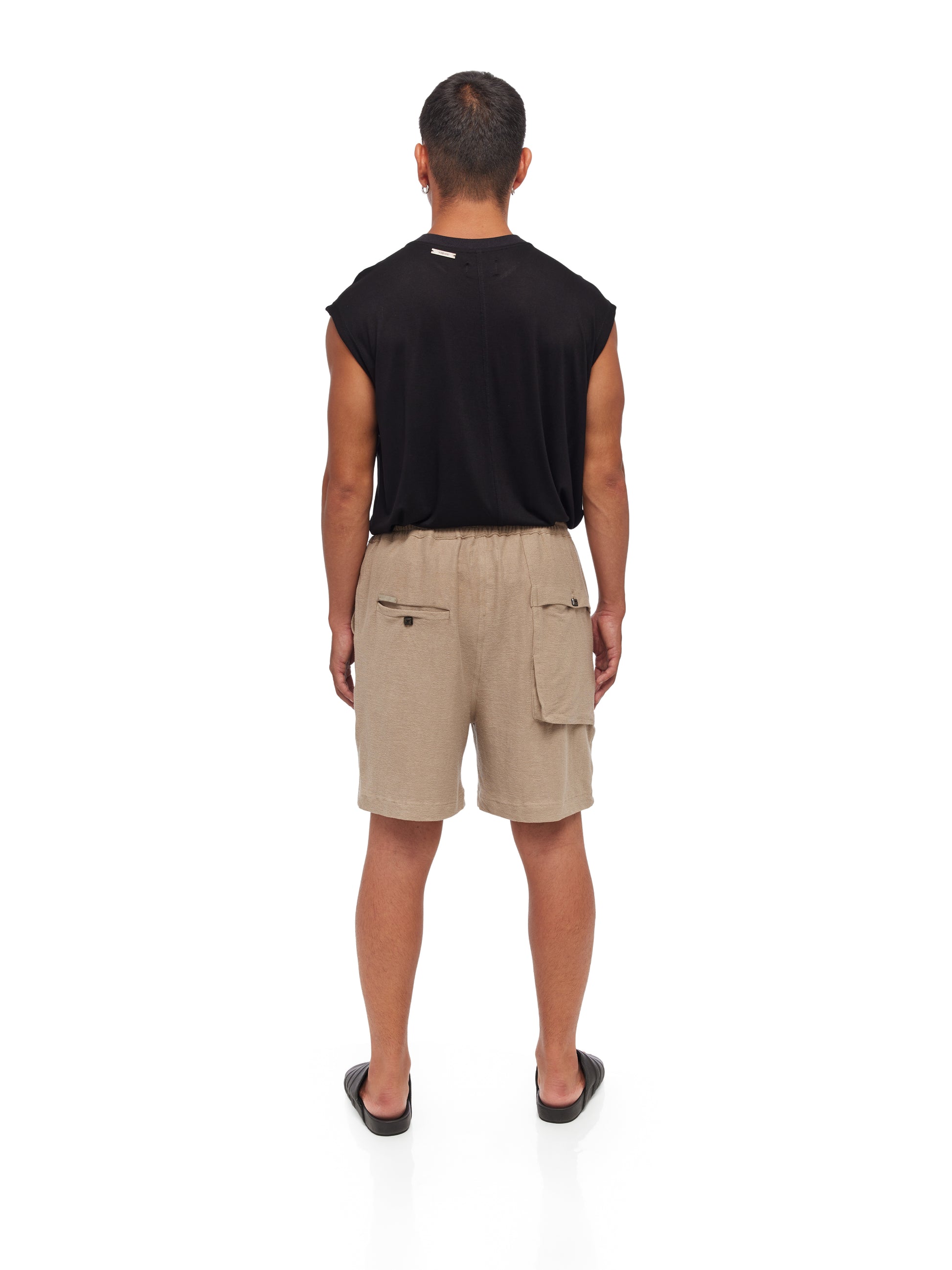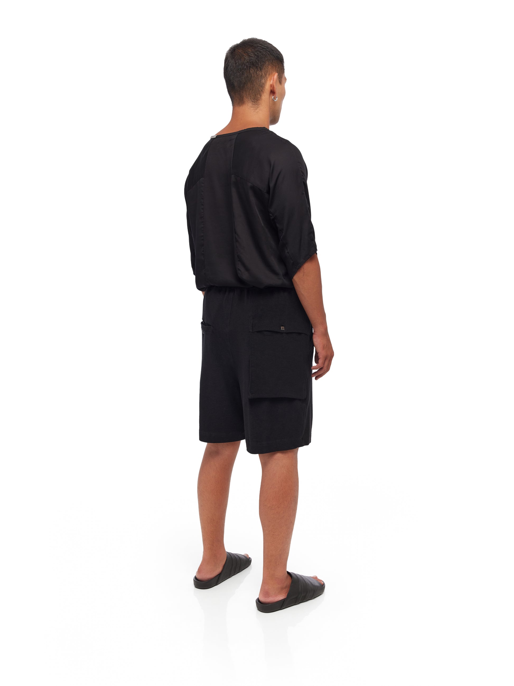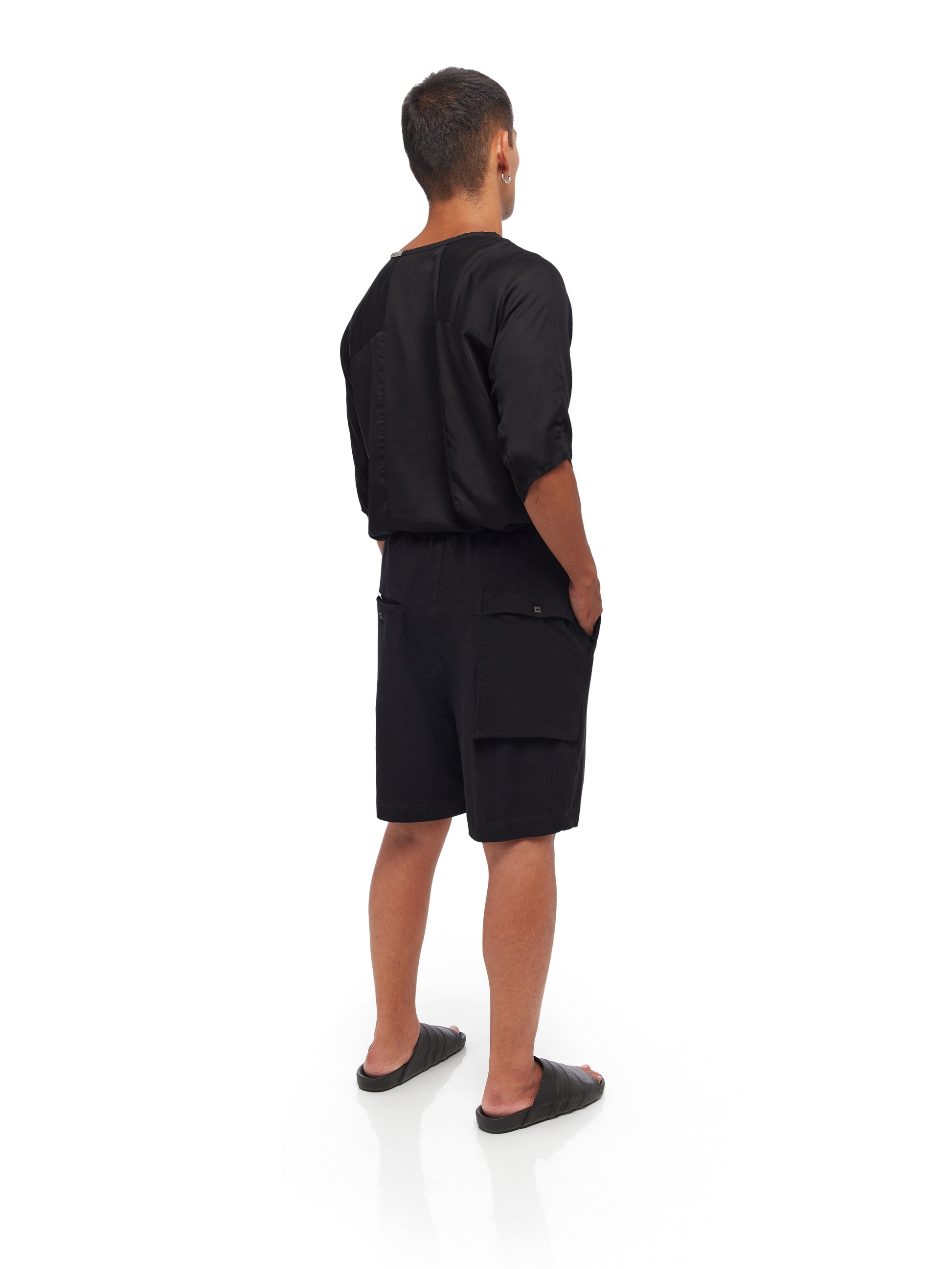 The YA|SAR Urban Bamboo Shorts, designed with a unique combination of 95% bamboo and 5% elastane for maximum comfort and flexibility. These shorts are perfect for those seeking both style and sustainability. The reversed bamboo fabric offers an exceptional soft touch, enhancing breathability and durability, while the elastane ensures a snug yet flexible fit. The design features an elasticized waistband with a drawstring to adjust for the perfect fit, metal tag detailing for a touch of luxury, and practicality with two side pockets and two back pockets for ample storage. Male model is wearing size M and is 180 cm tall.