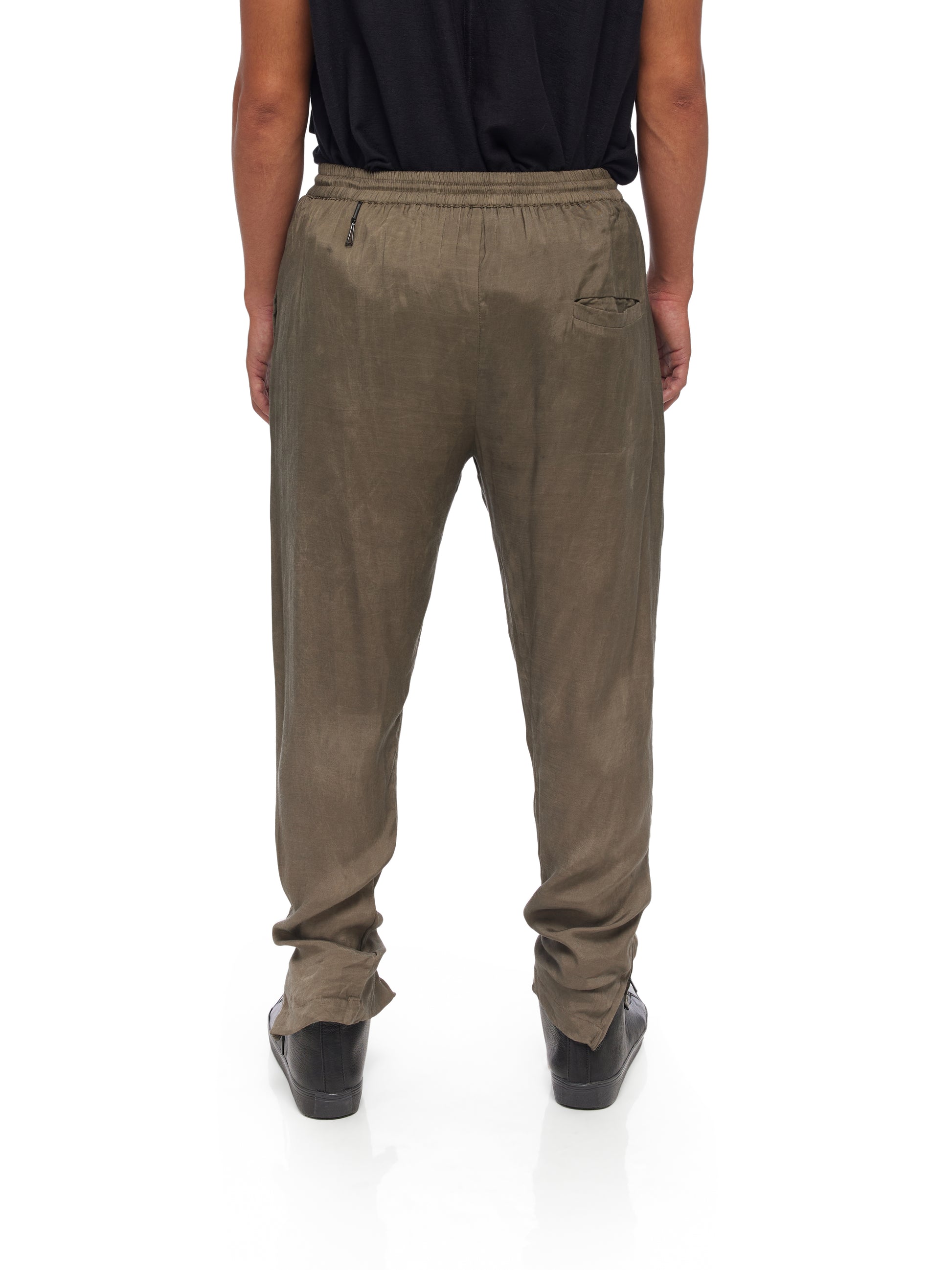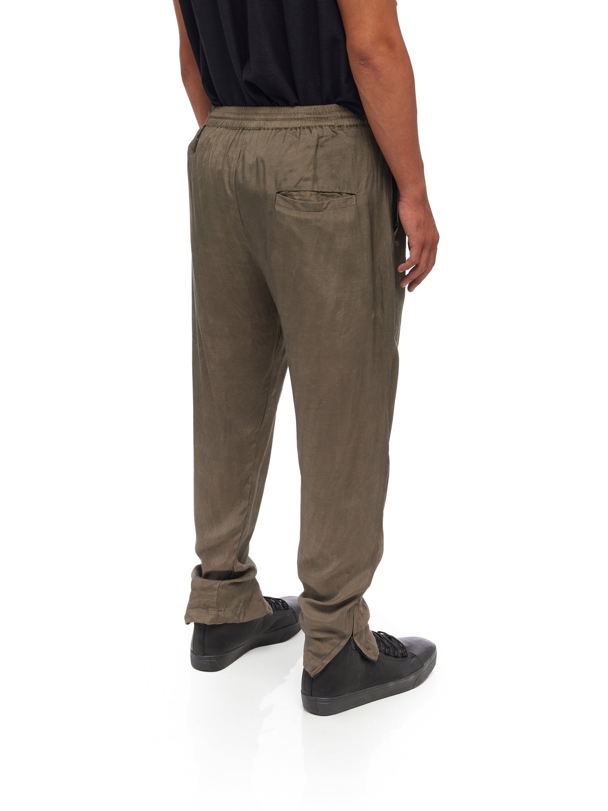 These YA|SAR drawstring pants are expertly crafted from 50% Viscose, and 50% Rayon, offering a light and airy feel that's perfect for stylish everyday wear. Available in sophisticated black and acid grey, these pants feature an elasticized waistband with a drawstring that ensures a comfortable and adjustable fit. The inclusion of ankle zippers adds a contemporary and practical touch, allowing for versatility in styling and fit. Metal tag detailing subtly enhances the garment with a signature YA|SAR accent, underscoring the brand's attention to detail and commitment to quality. Male model is wearing size M and is 180 cm tall.